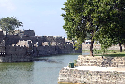 Vellore Fort is a large 16th-century fort situated in heart of the Vellore city built by Vijayanagara Kings. The Fort was at one point of time the headquarters of the Aravidu Dynasty of Vijayanagara Empire. The fort is known for its grand ramparts, wide moat and robust masonry. The Jalagandeeswarar Temple, dedicated to Jalagandeeswar, is noted for its sculptures, and speaks volumes of the exquisite craftsmanship of the highly skilled artisans of that period. The sculpture in the porch on the left of the entrance is a masterpiece appreciated by the connoisseurs of art and architecture. The temple was long used as an arsenal, and remained without a deity, although several years ago it was sanctified with an idol of Lord Shiva.